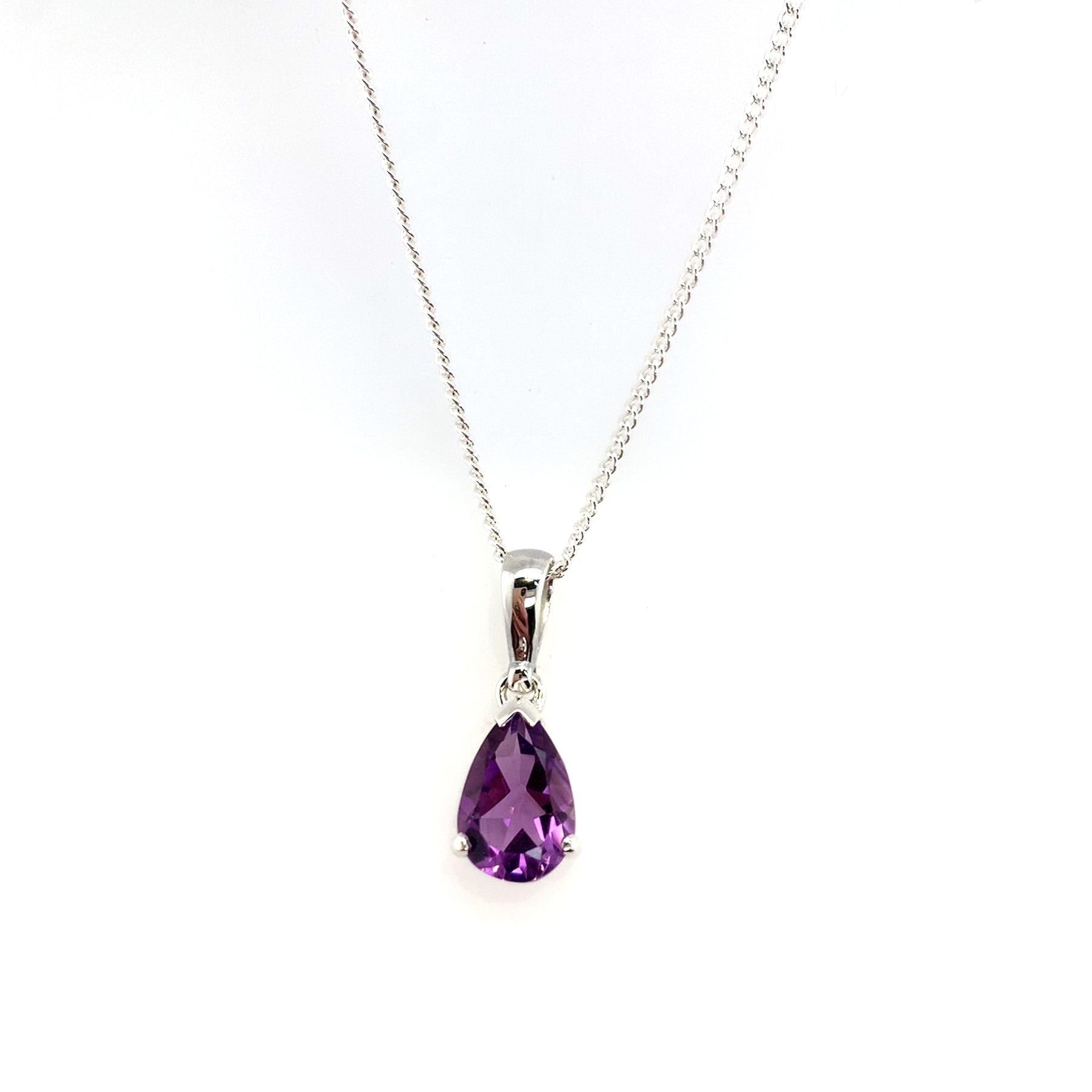 Bezel Pear-Cut Amethyst, hand made with sterling silver, claw setting pendant.